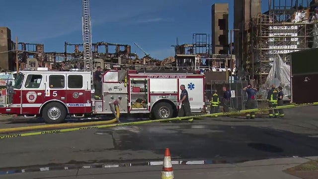 Crews were monitoring hotspots after a weekend fire at an Aurora apartment building construction site.
