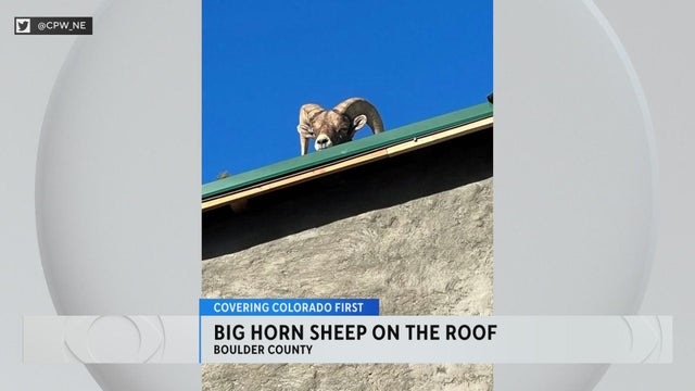 Colorado Parks and Wildlife Northeast Region tweeted that a bighorn sheep was caught stuck on top of a house in Boulder County on Tuesday.