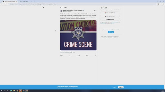 Two people were found dead inside a home in the Denver metro area early Friday morning after Adams County Sheriff's deputies were called to the home and found a male armed with a knife.
