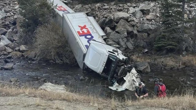 A semi truck went off eastbound I-70 at mile marker 237 in Colorado on Thursday.