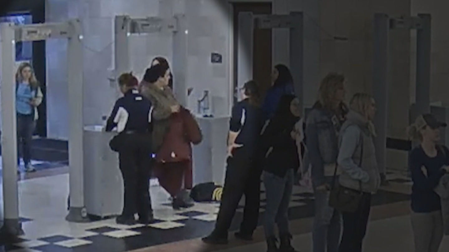 The video showed Bensreiti entering the will call security check point twice on Nov. 5. Both times the security employee asks her to remove her hijab.