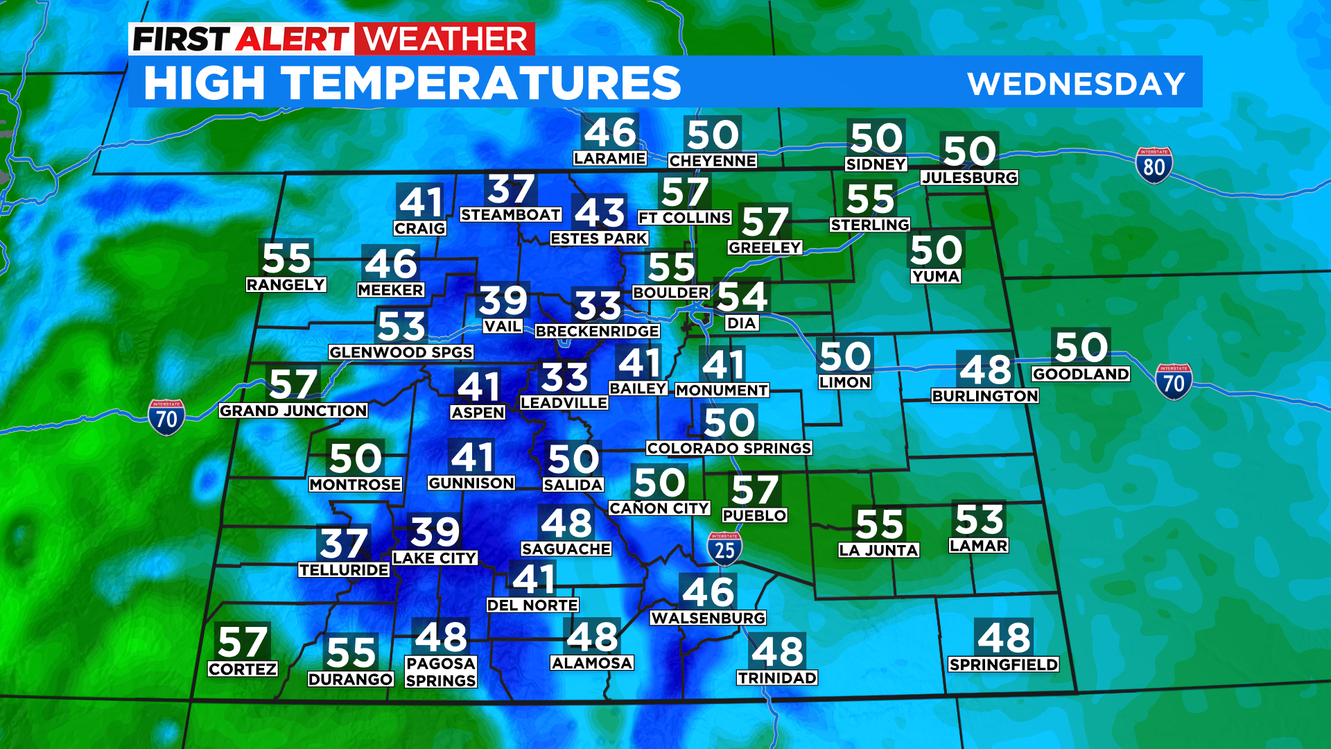 The wind speeds will lower significantly as we move into Thursday and Friday and the temperatures will continued to climb. The upcoming weekend will feature near record highs for some areas with widespread 50s in the mountains and 70s for the lower elevations. Some 80s are likely on the eastern plains.