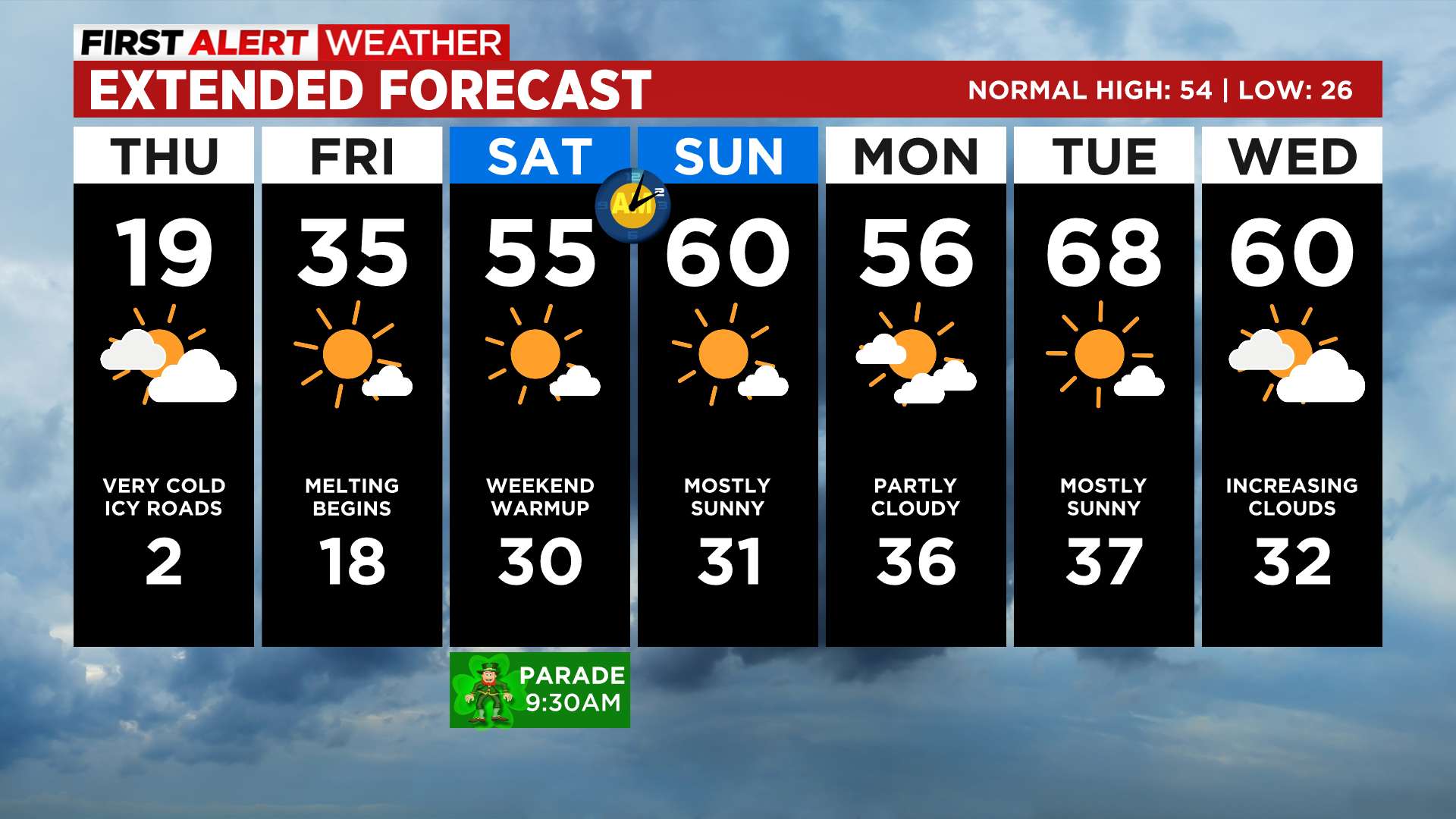 Skies will be mostly sunny by Friday as this storm moves away from the state. Temperatures will rebound with most places climbing back to or above freezing. In Denver we expect a high in the middle 30s.