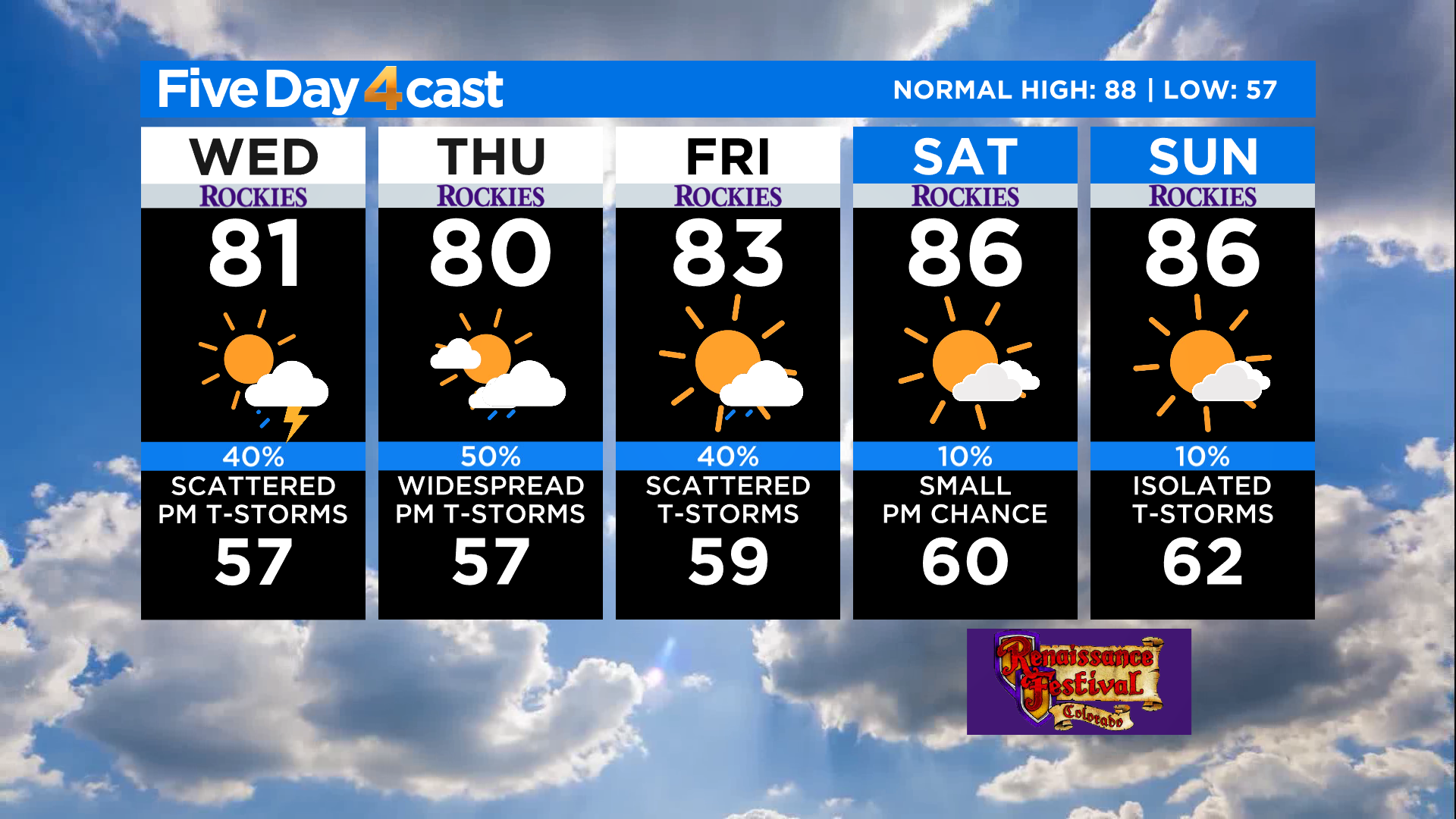 Temperatures will remain at or slightly below normal for this time of year around the state today. The western slope should top off in the low to mid 80s with mostly 70s in the mountains. Denver and the eastern plains will see upper 70s and lower 80s.