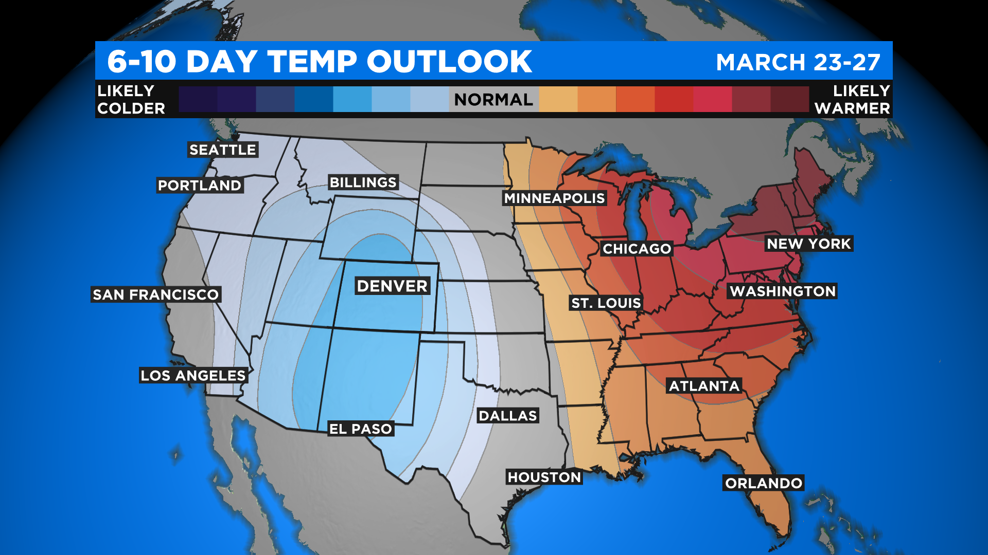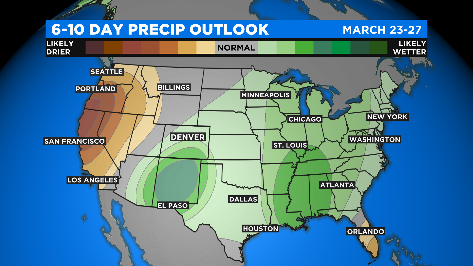 This storm will be the beginning of a cool and potentially wet first week of spring in Colorado. NOAA's Climate Prediction Center is calling for above normal precipitation and below normal temperatures in their latest 6-10 day extended outlook.