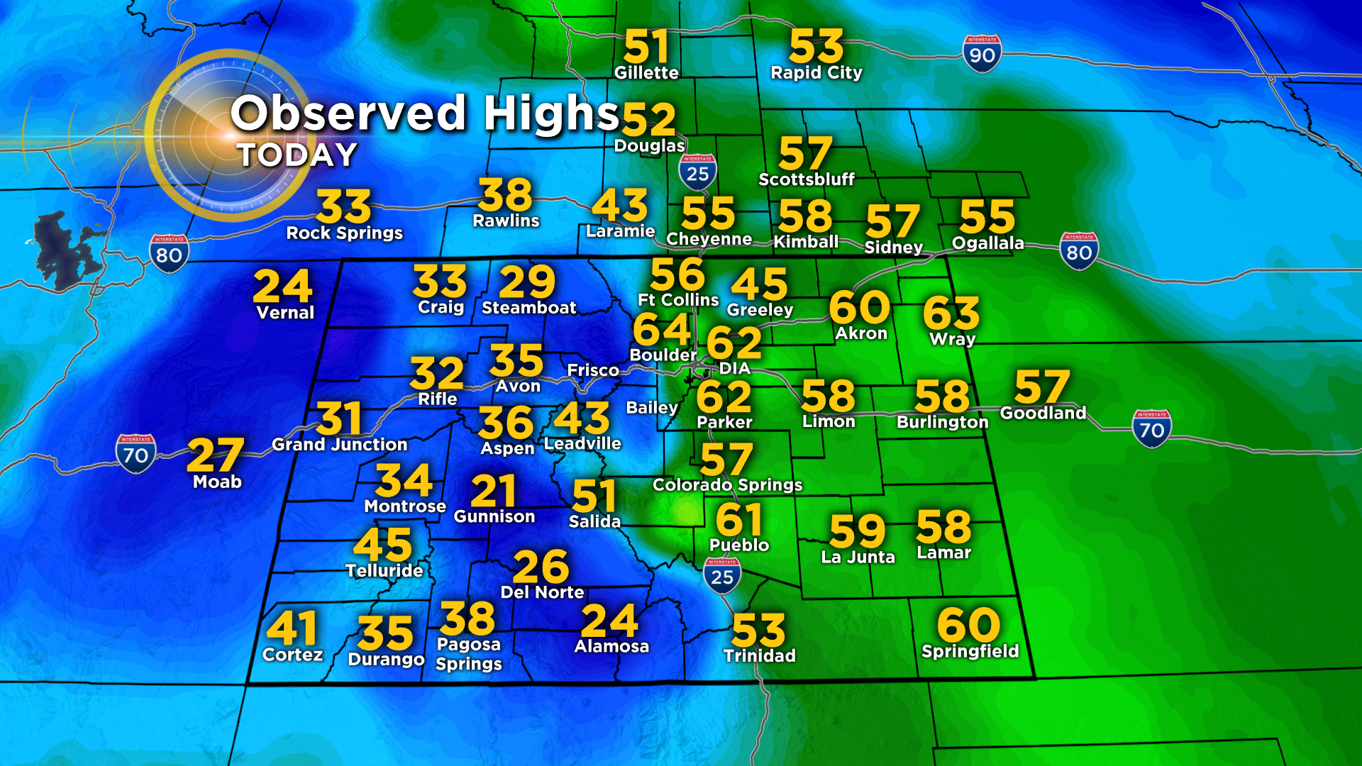 DENVER (CBS4) - High temperatures on Saturday felt more like the middle of April across a large part of Colorado, especially along and east of the Continental Divide. Denver topped out close to the daily record high of 67 degrees from 1956.