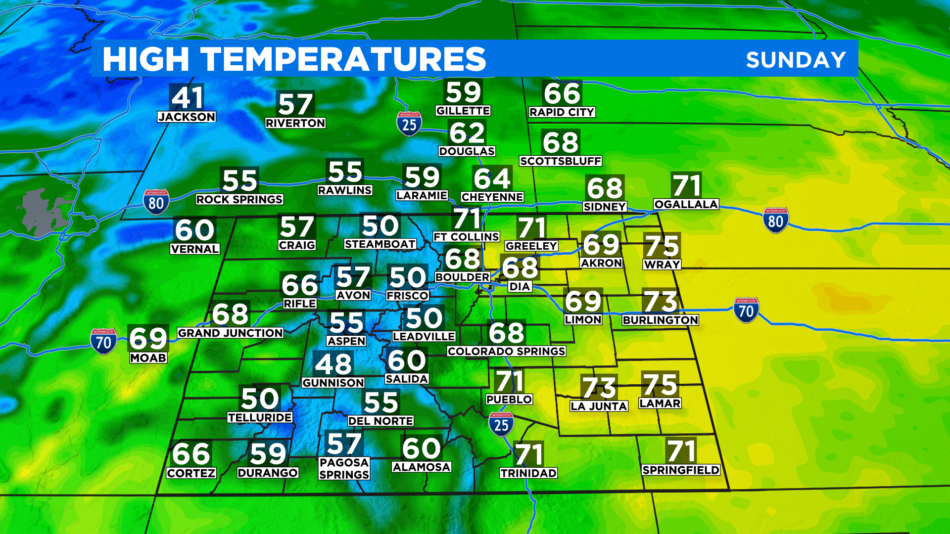 DENVER (CBS4) - The official high in Denver on Saturday was 66 degrees and we'll be around there or even a little higher from now through Tuesday. In fact the entire state is running anywhere from 10-20 degrees above normal for early March.