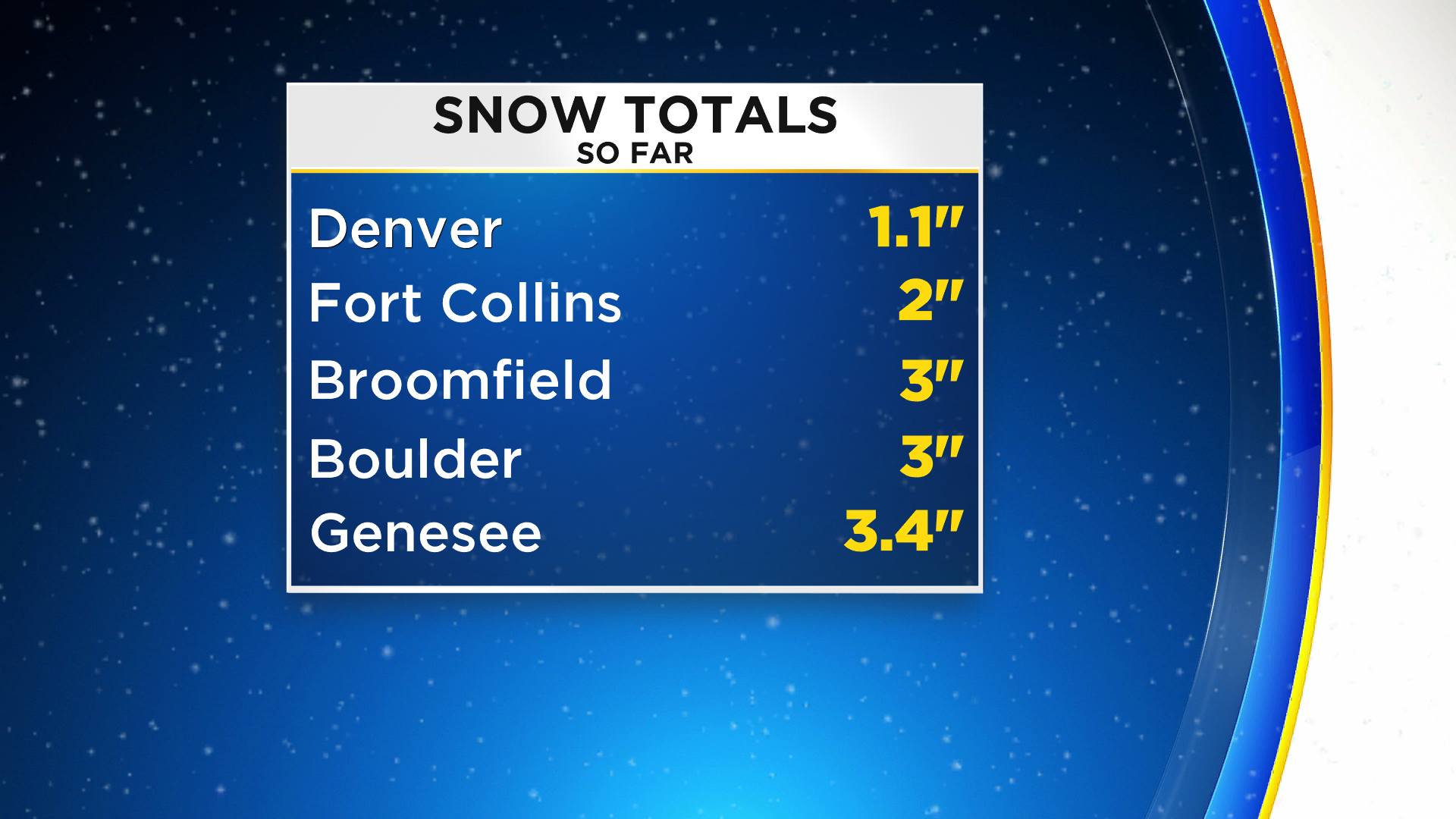 There is a Winter Weather Advisory still in place across the Front Range Denver and most of northeastern Colorado. Denver should see 2 to 5 inches of snow by Wednesday evening. With higher amounts in and near the foothills.