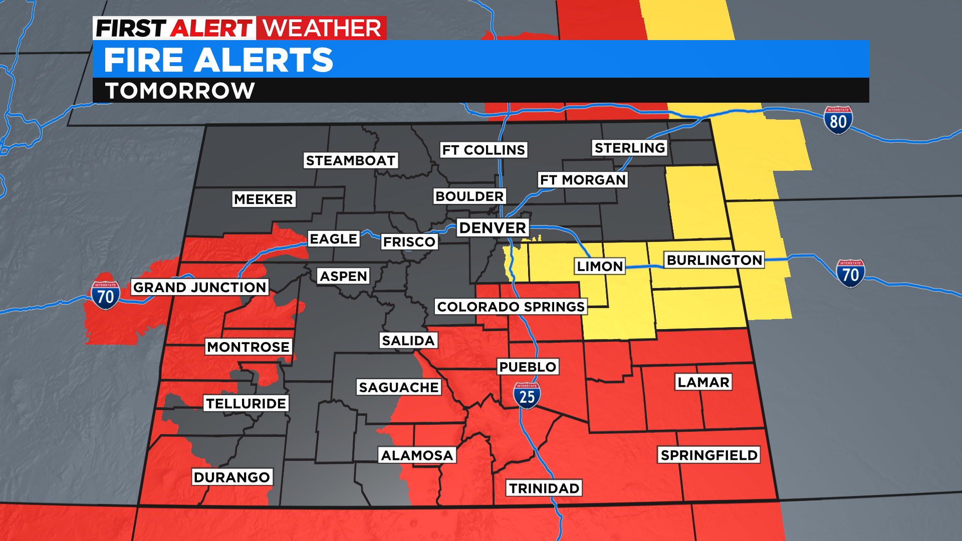 We warm up a bit with the wind as well. Highs across the Front Range and plains jump to the upper 70s and low 80s. Lamar is looking to be just shy of 90!