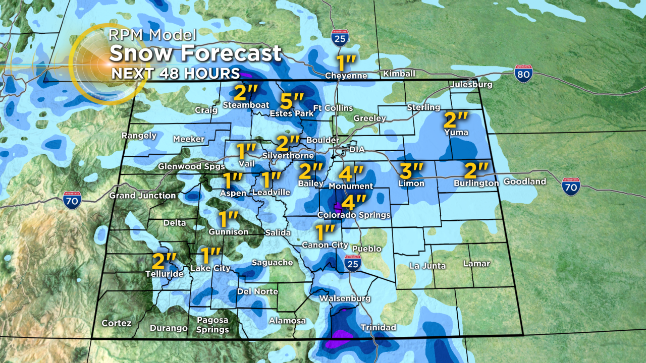 This latest storm will take a southerly track across the region which will keep most of the moisture associated with the storm in Arizona and New Mexico. That will limit snowfall around Denver, Boulder, and Fort Collins to just an inch or less. Meanwhile locations south of Castle Rock will see higher amounts with 2-4 inches around the Colorado Springs area.