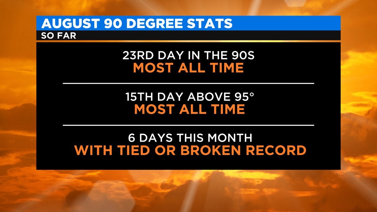 As of Tuesday, we officially had 23 days in the 90s here in Denver. This is now the all time record for 90 degree days in August. We've also had 15 days above 95 degrees. This is also now the all time record high for 95 or above days in Denver. The old record was 12 from 2011.