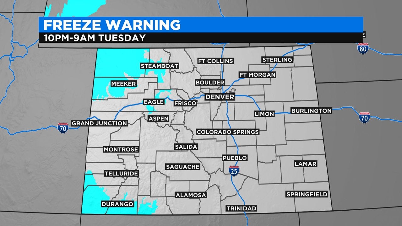 DENVER (CBS4) - After a very active weather weekend, we aren't done just yet. Monday was already a windy day, but that will continue overnight into Tuesday. We're also in for a round of snow in the high country, and Freeze Warnings in parts of Colorado. There's a lot going on in the forecast through Tuesday, so let's get to it!