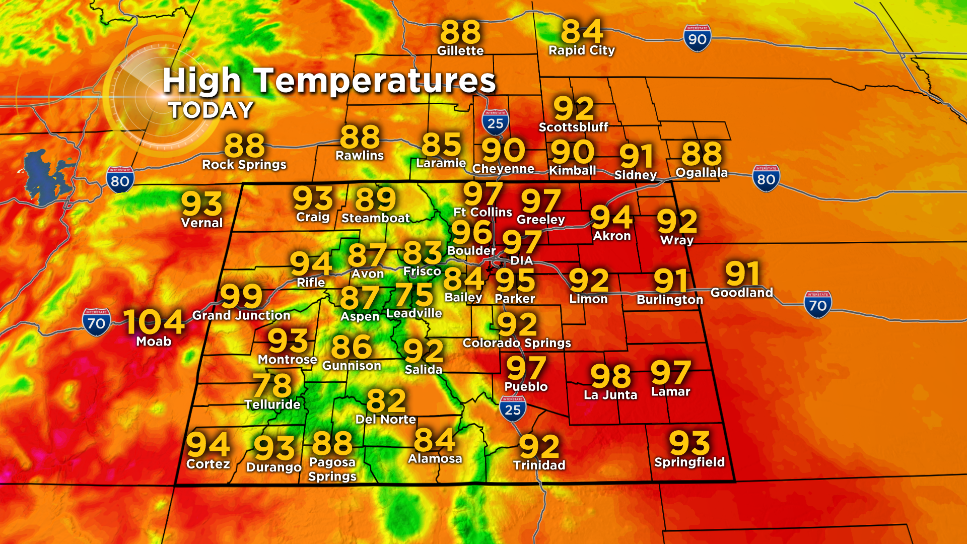 DENVER (CBS4) - A large ridge of high pressure will keep Colorado dry and hot for the rest of your long holiday weekend with high temperatures approaching record levels both today and tomorrow. Denver's record high for September 1 is 97°F set in 1995.