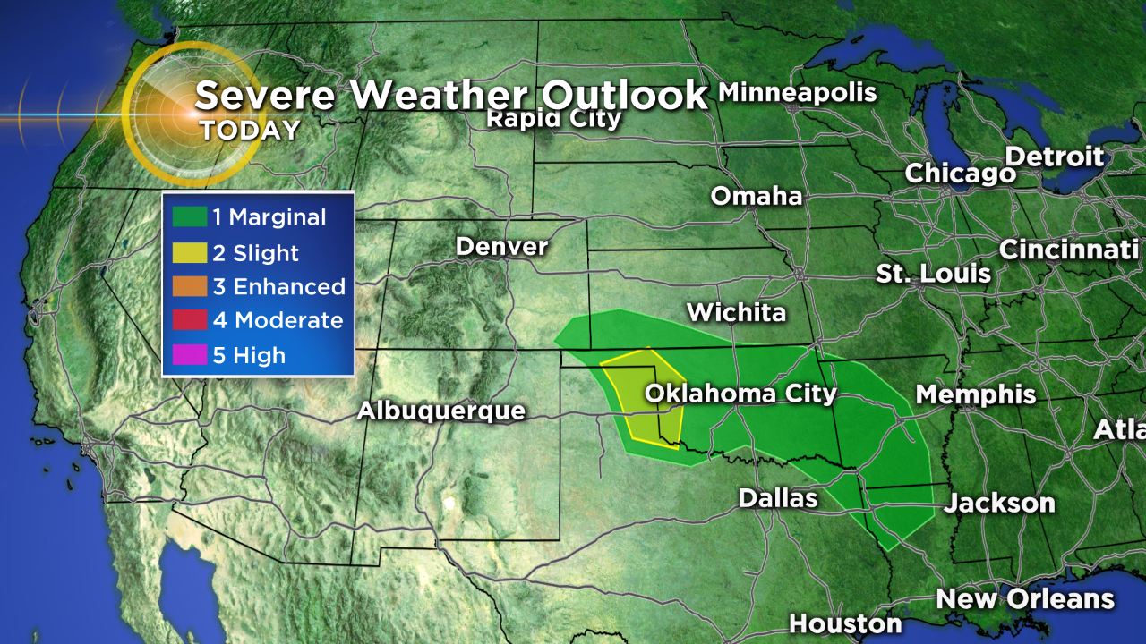 There is a chance for some strong to severe thunderstorms this afternoon in the panhandles of Texas and Oklahoma. Colorado will be right on the western edge of the threat zone so while we aren't expecting any severe weather, we will still keep a close eye to the sky just in case, especially on the southeast plains.