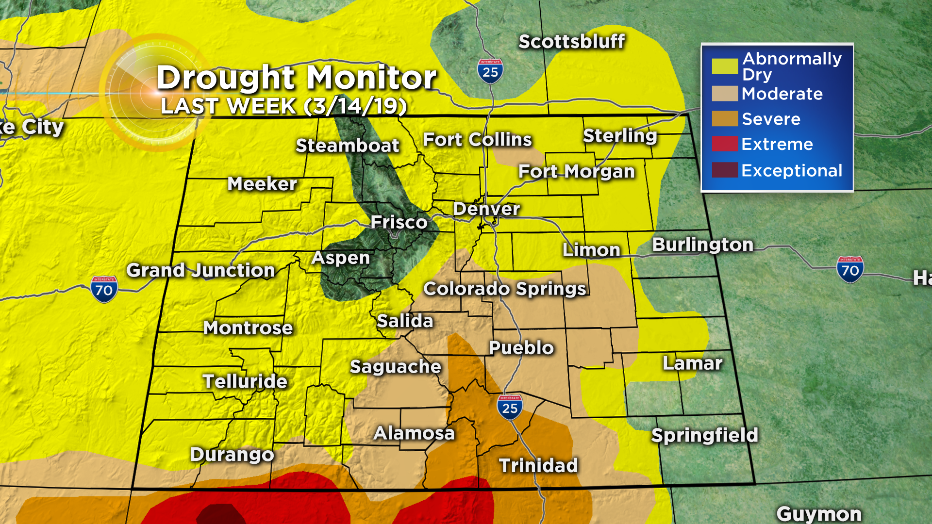 Then using data analyzed just before the bomb cyclone hit on March 13, there was tremendous improvement from December but 25% of Colorado still remained under some stage of drought and 83% of the state was still considered abnormally dry.