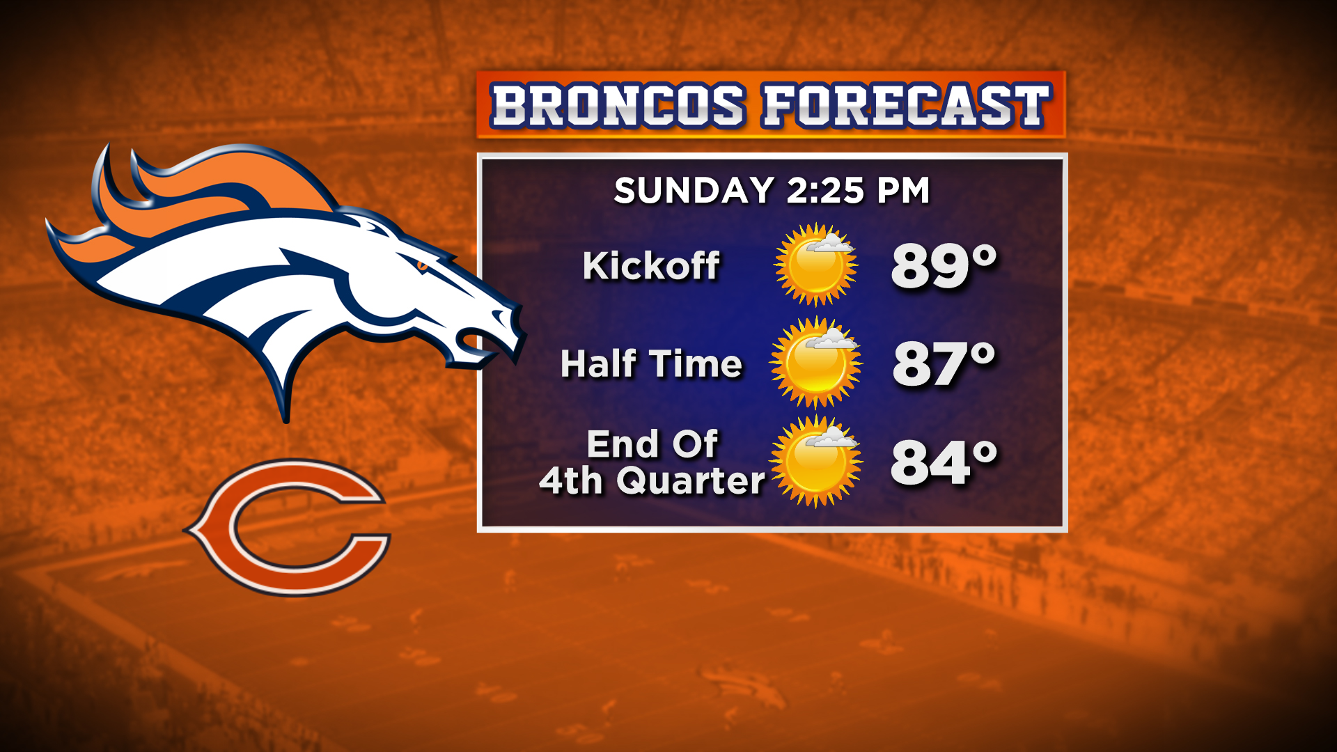 The Broncos first regular season home game Sunday is going to be high and dry. The high temperature in Downtown Denver will be just shy of 90 on Sunday!