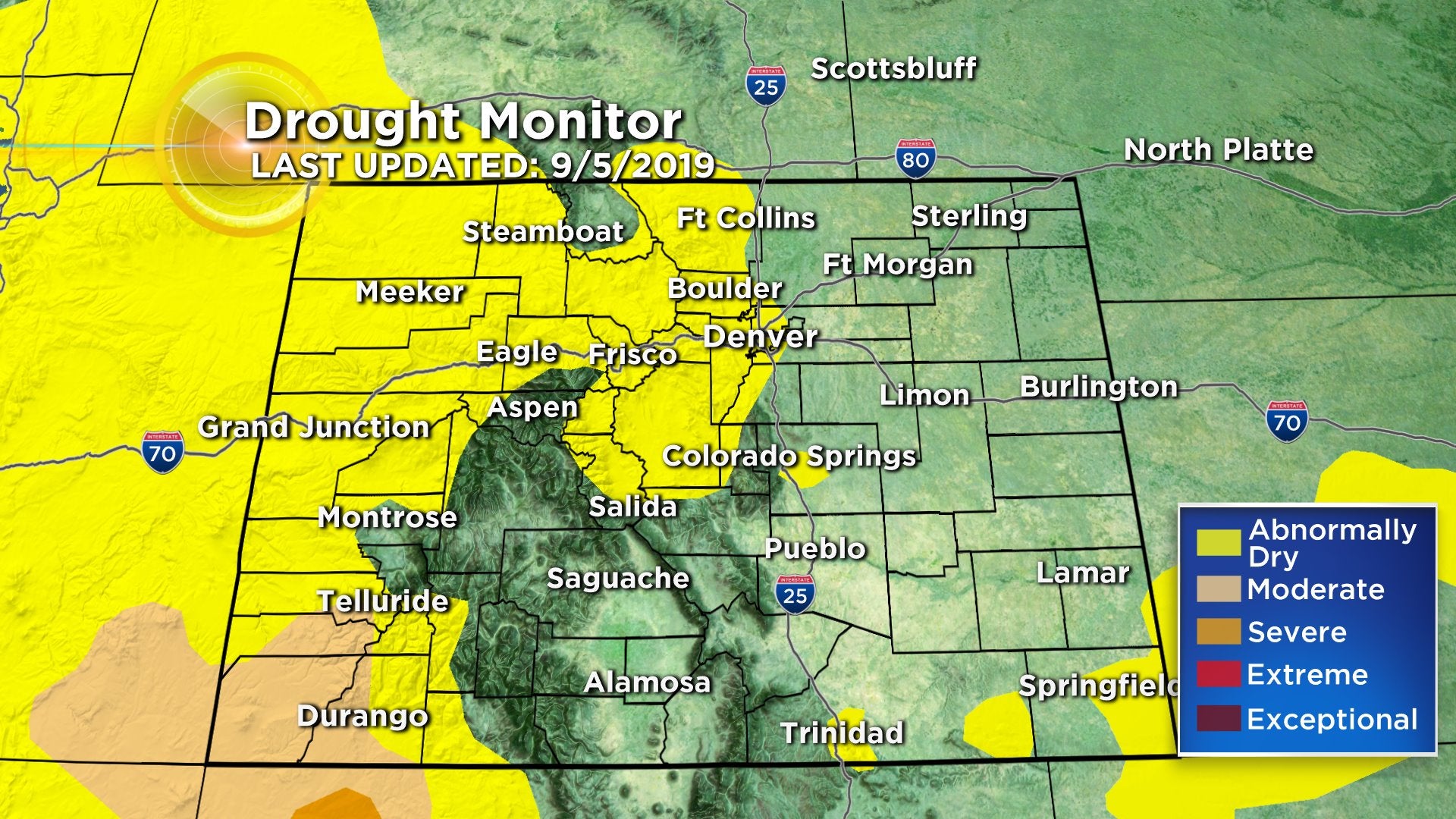 DENVER (CBS4) - After a wet spring that ended drought across Colorado dry conditions have returned to some areas thanks to a dismal monsoon season. An update from the U.S. Drought Monitor released on Sept. 5 showed 41 percent of the state is abnormally dry with moderate drought creeping back into the southwest counties.