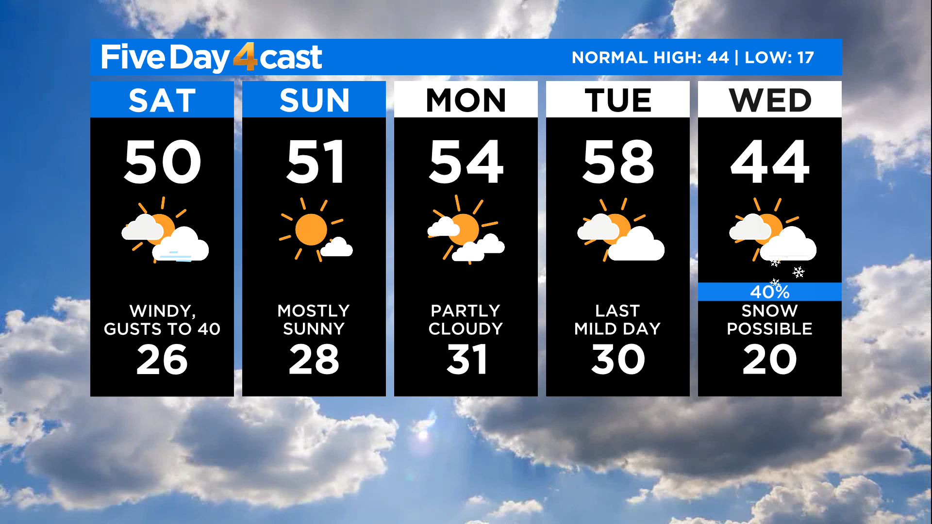 Looking ahead we will see warmer conditions return as early as Sunday as a ridge of high pressure builds into the state. It will influence our weather into early next week before another weather change arrives by Wednesday.