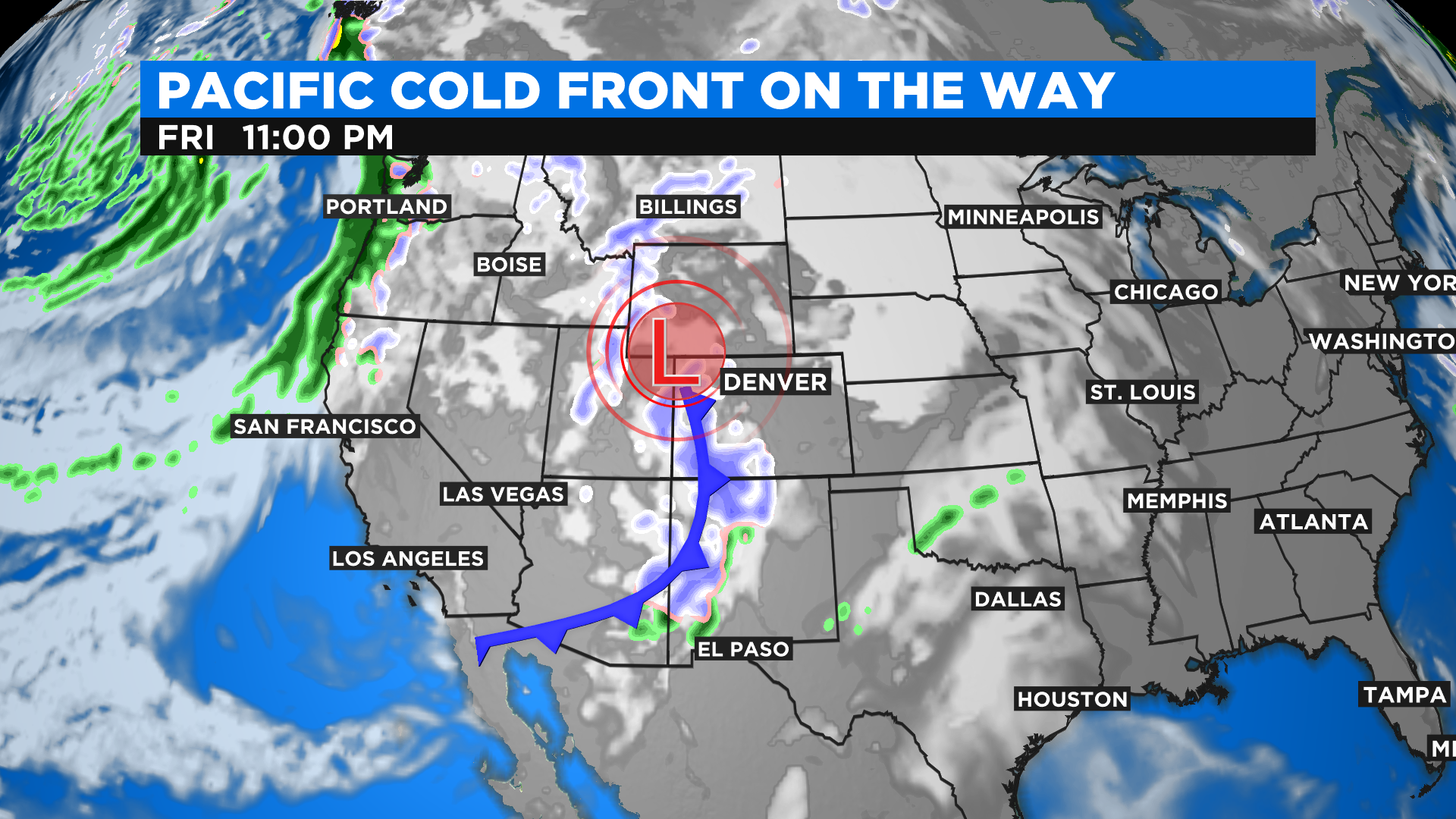 DENVER (CBS4) - The weekend will start off a little bit active in terms of the weather around Colorado as a cold front moves in from the west. The front has origins over the Pacific Ocean so it isn't too terribly cold but you will notice a difference this weekend in places like Denver compared to highs on Friday.