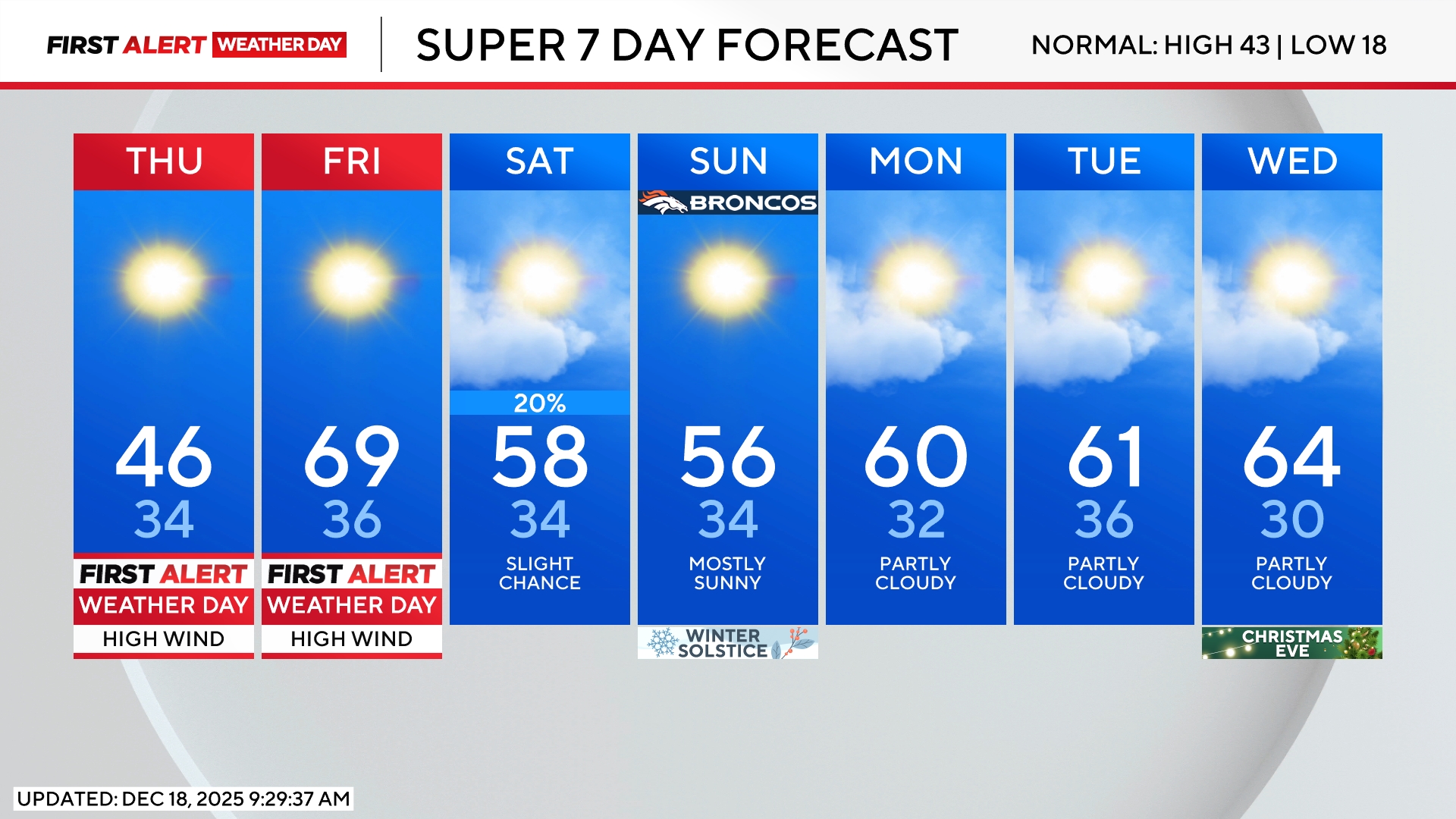 Slightly cooler weather will arrive on Thursday with high temperatures returning to the 70s. Then much cooler weather is in the forecast for Friday and Saturday along with a good chance for mountain snow showers. Moisture along the urban corridor and across the Eastern Plains will be more limited but at least a few rain showers are possible.