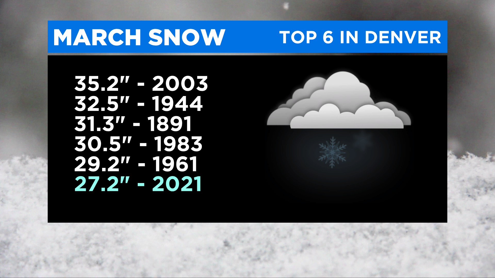 So far this month Denver's official weather station (located at Denver International Airport) has measured 27.2 inches of snow and 3.23 inches of liquid, which is a combination of rain and melted snow.