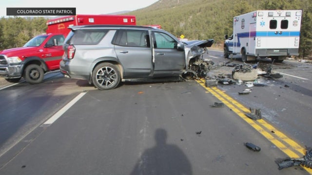 The three-vehicle head-on crash happened near Bailey around 1 p.m., according to Colorado State Patrol.
