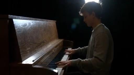 A 13-year-old Ukrainian refugee, who doesn't speak any English, shows off unique talent to classmates by playing the piano.