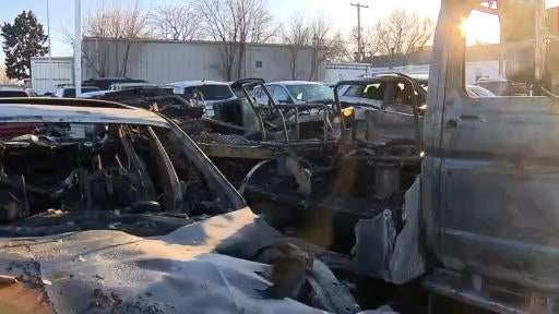18 vehicles damaged after car lot catches blaze