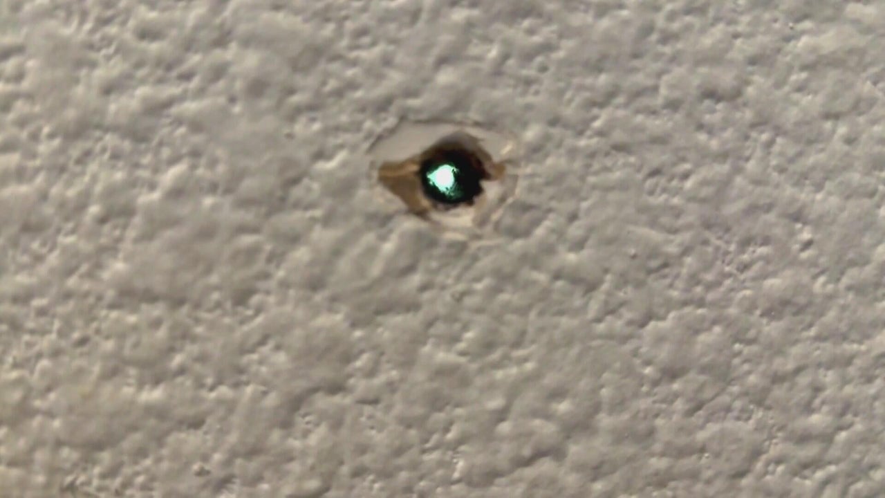 The bullet that made the hole in the wall continued through her arm, just inches from her head after she had gone to bed Wednesday night to watch television.