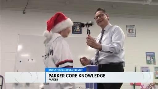 The First Alert Weather Team was able to take one more visit ahead of the holidays as meteorologist Dave Aguilera dropped by Parker Core Knowledge to have some fun with students.