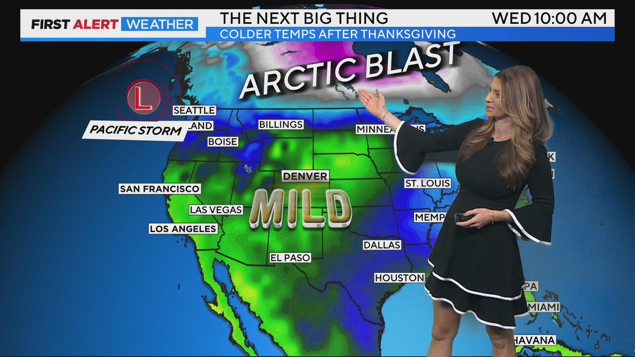 Warm, mild weather settles in as busy travel days approach, but by Thanksgiving, a blast of arctic air will converge with a Pacific storm system that will bring colder temperatures and snow by Thursday night.