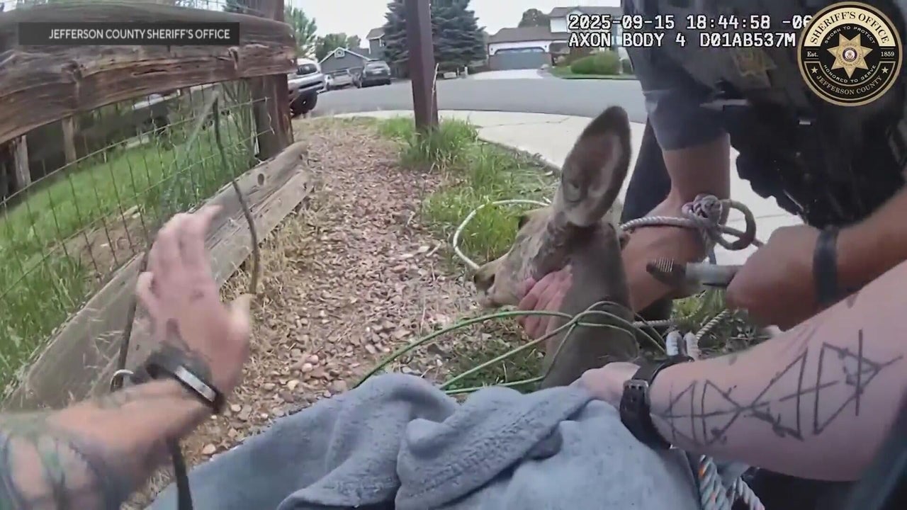 In Littleton, a deer was freed from a metal tomato tower after getting caught in the cage.