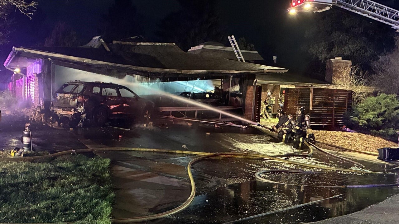 Denver firefighters investigating after car crashes into garage, catches fire