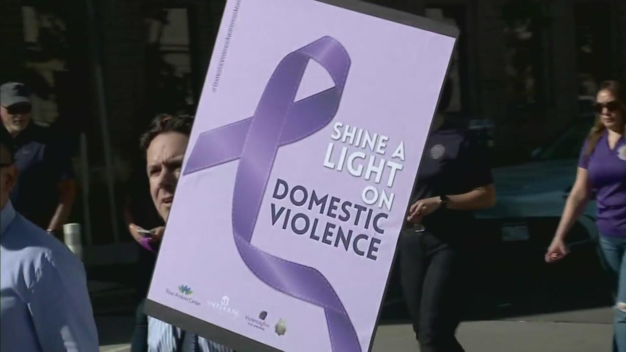 Dozens marched on the streets of Denver on Wednesday for National Domestic Violence Awareness Month.