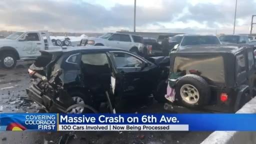 A crash in icy conditions and involving approximately 100 drivers closed 6th Avenue during Friday morning's rush hour.