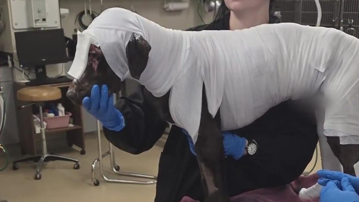 Hunting dog recovering after surviving fire at kennel