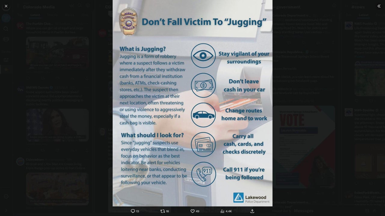 Lakewood police warn of "jugging" trend targeting people who leave bank with money