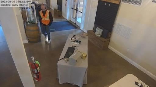 Police are searching for a man who was caught on video stealing thousands of dollars of wedding gifts.