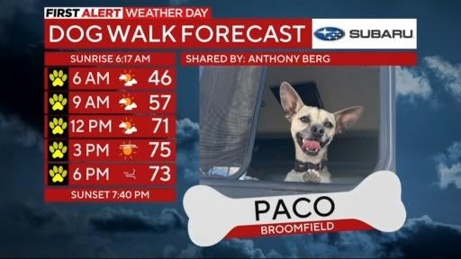 Paco was featured in the Dog Walk Forecast during CBS Colorado Mornings on Tuesday, April 18, 2023.