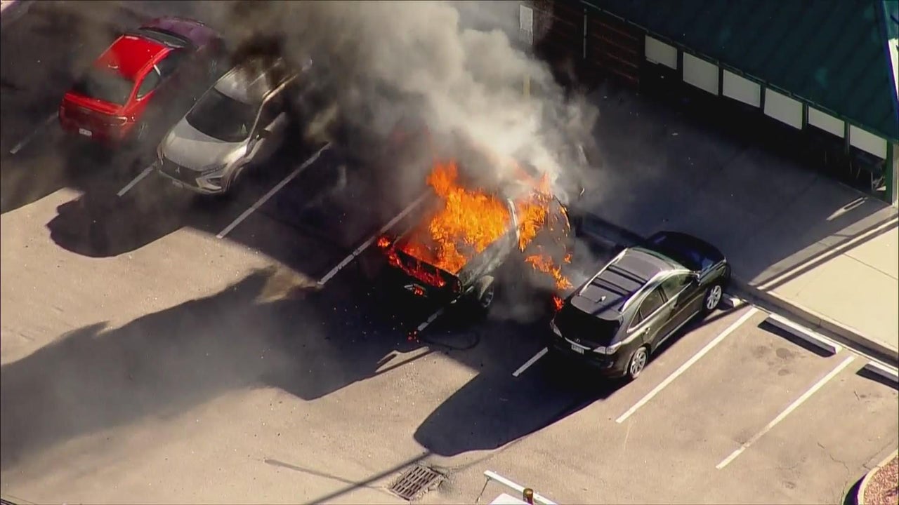 CBS Colorado's news helicopter captured video on Friday morning of a pickup truck that caught fire.