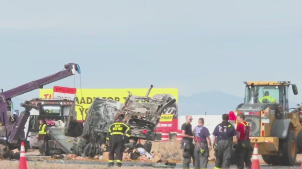 Portion of I-70 closed east of Denver due to semi fire and crash