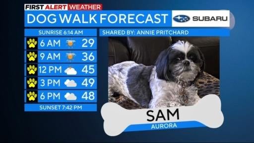 Sam was feature in the Dog Walk Forecast during CBS Colorado Mornings on Thursday, April 20, 2023.