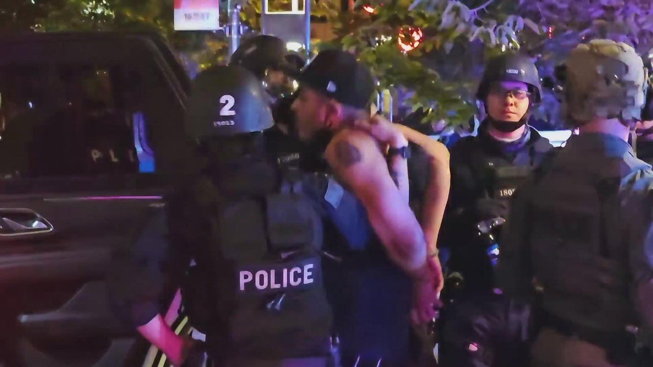 Denver police arrested several demonstrators during a march against ICE raids in downtown Denver Tuesday night.