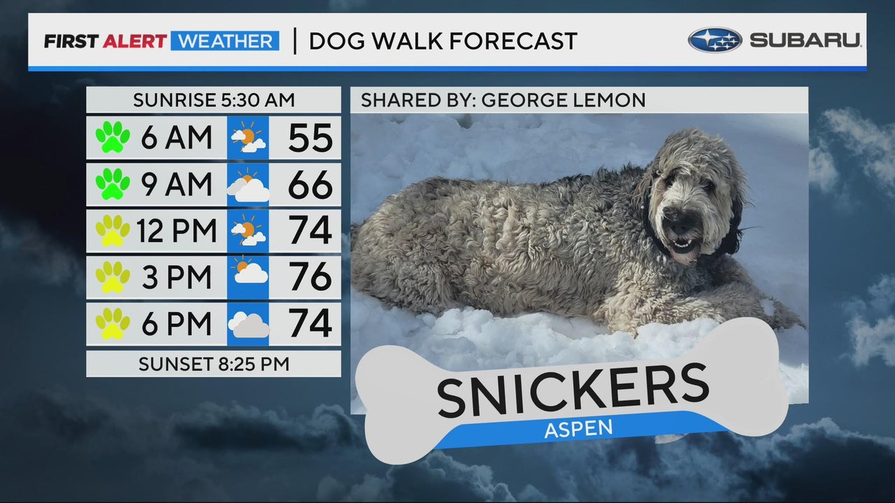 Snickers joined the Dog Walk Forecast on CBS Colorado Mornings on June 8, 2023.