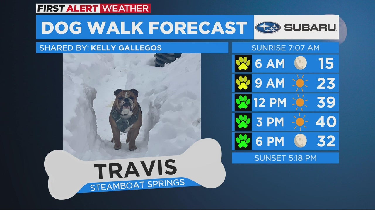 Travis the English Bulldog was featured in the Dog Walk Forecast at 5 a.m. on Wednesday, Feb. 1, 2023! Send us pictures of your Colorado dogs for a chance to air during CBS Colorado Mornings! https://www.cbsnews.com/colorado/dogwalk/