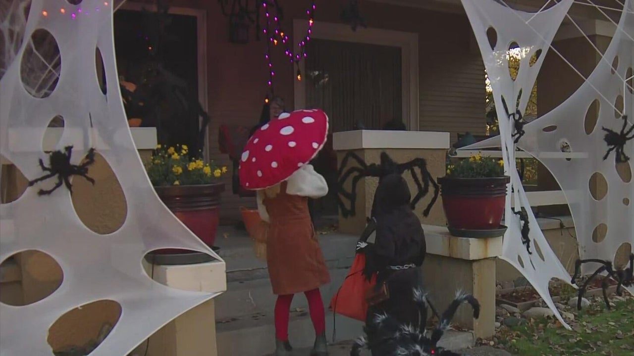 Trick-or-treaters navigate through spider webs, skeletons in Loveland