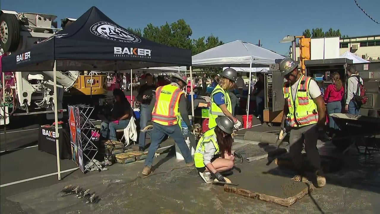 Young female students learn about construction jobs in Colorado in hands-on demonstrations