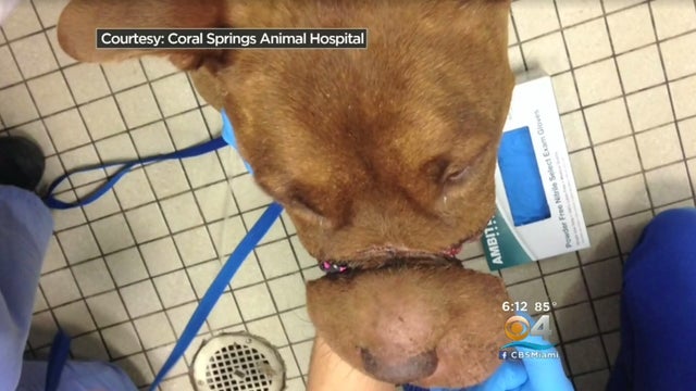 A pit bull named Liberty was muzzled with a rubber band, faces multiple surgeries