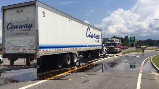Firefighters used sand and tarps Monday to clean up New Hampshire highway