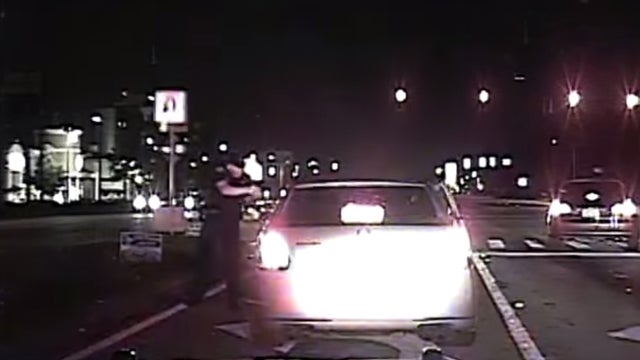 Video from the dashcam of an Orlando police officer shows a fleeing suspect running over the officer during a chase on Monday.